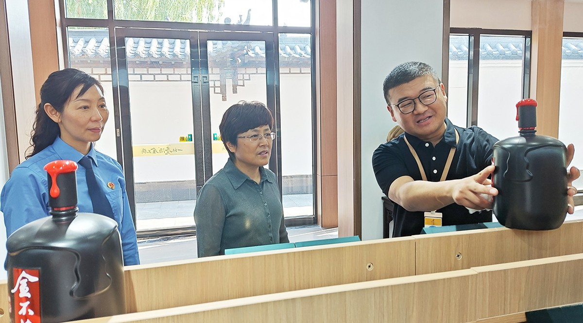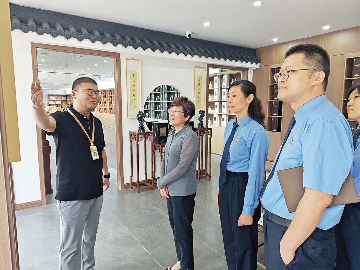劉繼英一行在金不換集團(tuán)黨委書(shū)記、總裁支濤的陪同下,實(shí)地查看了金不換白酒儲(chǔ)藏、銷(xiāo)售、生產(chǎn)、文化展示基地。聽(tīng)取企業(yè)生產(chǎn)經(jīng)營(yíng)情況和發(fā)展規(guī)劃介紹。劉繼英檢察長(zhǎng)對(duì)金不換多年來(lái)堅(jiān)持守法誠(chéng)信經(jīng)營(yíng),創(chuàng)造良好生產(chǎn)經(jīng)營(yíng)環(huán)境,取得高質(zhì)量發(fā)展給予高度贊揚(yáng)。